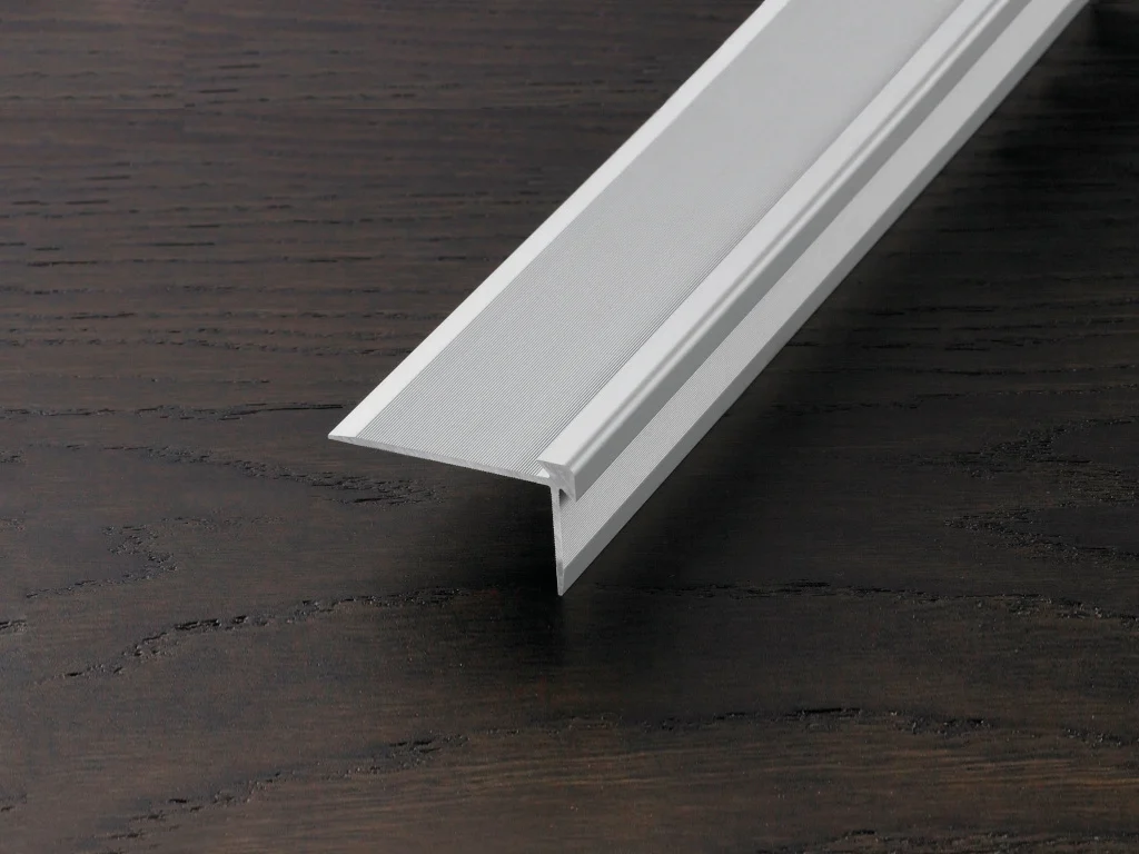 Die eloxierte Aluminiumoberfläche schützt das Profil vor Kratzern und Abnutzung und verleiht der Treppe eine moderne, hochwertige Optik. Das Profil stabilisiert die Kante zuverlässig, sorgt für Langlebigkeit und rundet das Gesamtbild elegant ab. Die Montage ist dank des durchdachten Designs einfach und sicher – für einen sauberen, langlebigen Abschluss ohne großen Aufwand.