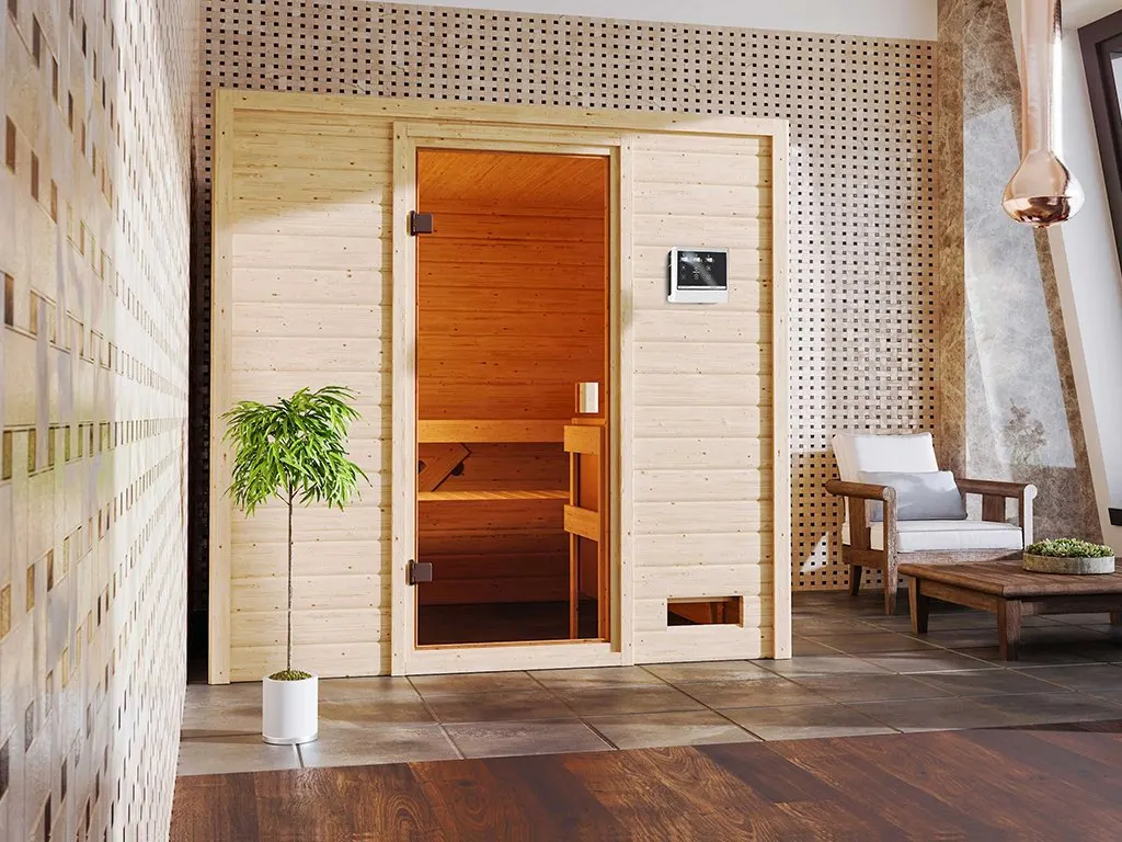 Unsere Wellnessartikel (Saunen, Saunahäuser, Saunafässer, Kotas, Infrarotkabinen, Saunaöfen etc.) dürfen nur für den privathäuslichen Gebrauch verwendet werden! Saunaöfen und dazugehörige Steuerelemente dürfen nur durch einen örtlich zugelassenen Elektroinstallateur mittels festem Anschluss an das Netz angeschlossen werden. Ausnahme: 230 Volt Plug-&-Play-Saunaöfen. Die Mindestsicherheitsabstände vom Ofen zur Wand und vom Ofen zum Ofenschutz müssen unbedingt eingehalten werden. Bei 9-kW-Öfen muss die Höhe des Ofenschutzes angepasst werden. Bitte beachte zu den obig genannten Hinweisen die beigefügten Montageanleitungen.