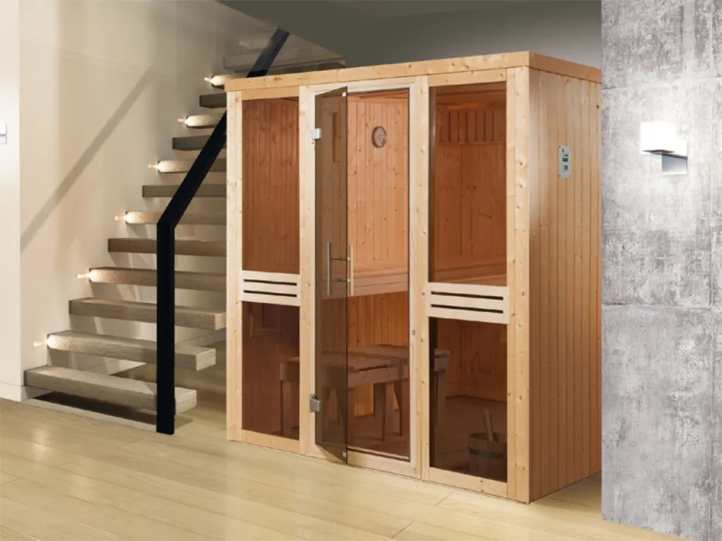 Unsere Wellnessartikel (Saunen, Saunahäuser, Saunafässer, Kotas, Infrarotkabinen, Saunaöfen etc.) dürfen nur für den privathäuslichen Gebrauch verwendet werden! Saunaöfen und dazugehörige Steuerelemente dürfen nur durch einen örtlich zugelassenen Elektroinstallateur mittels festem Anschluss an das Netz angeschlossen werden. Ausnahme: 230 Volt Plug-&-Play-Saunaöfen. Die Mindestsicherheitsabstände vom Ofen zur Wand und vom Ofen zum Ofenschutz müssen unbedingt eingehalten werden. Bei 9-kW-Öfen muss die Höhe des Ofenschutzes angepasst werden. Bitte beachte zu den obig genannten Hinweisen die beigefügten Montageanleitungen.