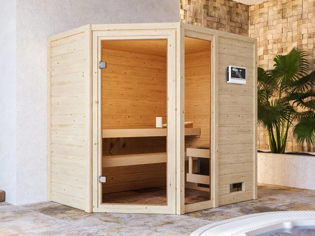 Sauna Jada mit bronzierter Glastür + 9 kW Saunaofen ext. Strg.