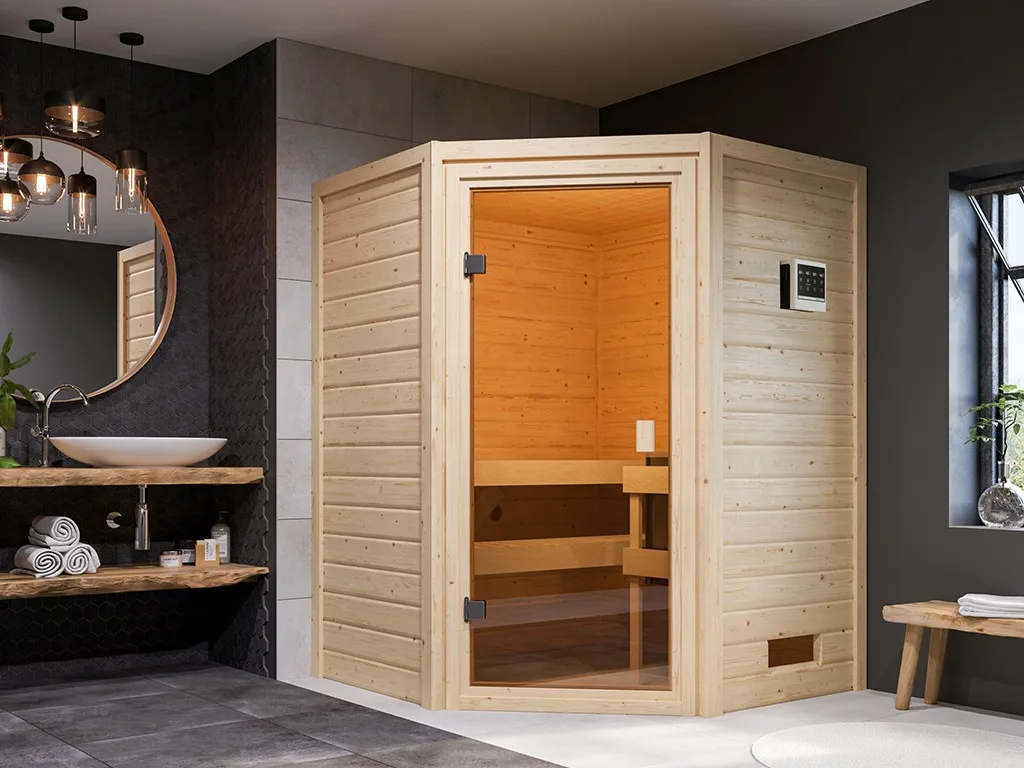 Sauna Massivholzsauna Antonia, inkl. 9 kW Bio-Ofen mit externer Steuerung