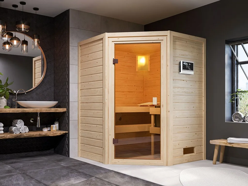 Sauna Massivholzsauna Antonia, inkl. 9 kW Ofen mit externer Steuerung