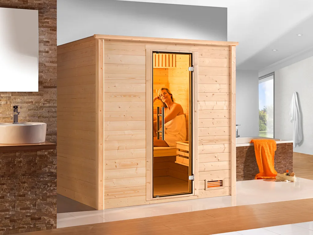 Sie sind auf der Suche nach einem eigenen Wellness-Bereich mit der passenden Ausstattung? Mit den beiden stabilen Liegen und Kopfstützen eignet sich BERGEN 2 bestens für entspannte Stunden zu zweit, um gemeinsam optimales Saunaklima zu genießen. Dem Sauna-Luxus steht damit also nichts mehr im Wege!
