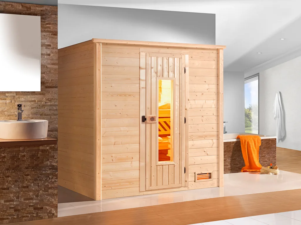 WEKA Massivholzsauna "BERGEN 2 HT" isolierte Massivholztür mit Glaseinsatz
