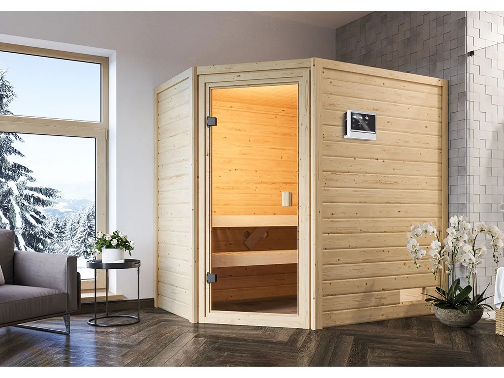 Sauna Massivholzsauna Jella, inkl. 9 kW Ofen mit externer Steuerung