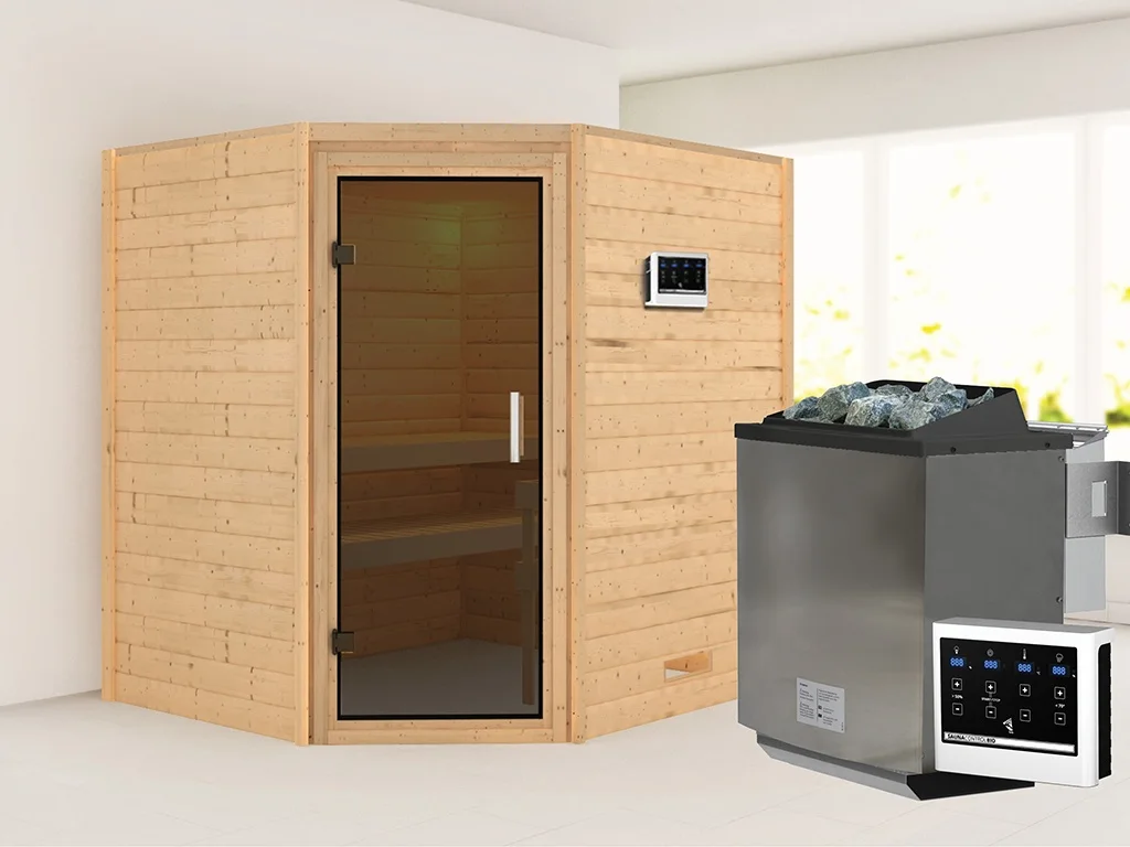 Sauna Massivholzsauna Mia, inkl. 9 kW Bio-Ofen mit externer Steuerung