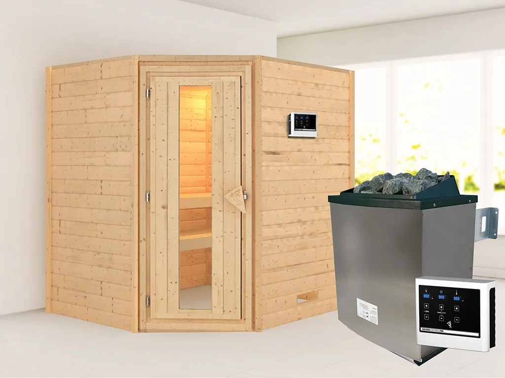 Sauna Massivholzsauna Mia, inkl. 9 kW Ofen mit externer Steuerung