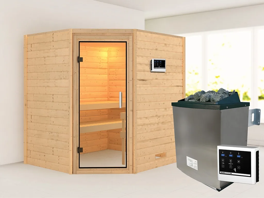 Sauna Massivholzsauna Mia, inkl. 9 kW Ofen mit externer Steuerung
