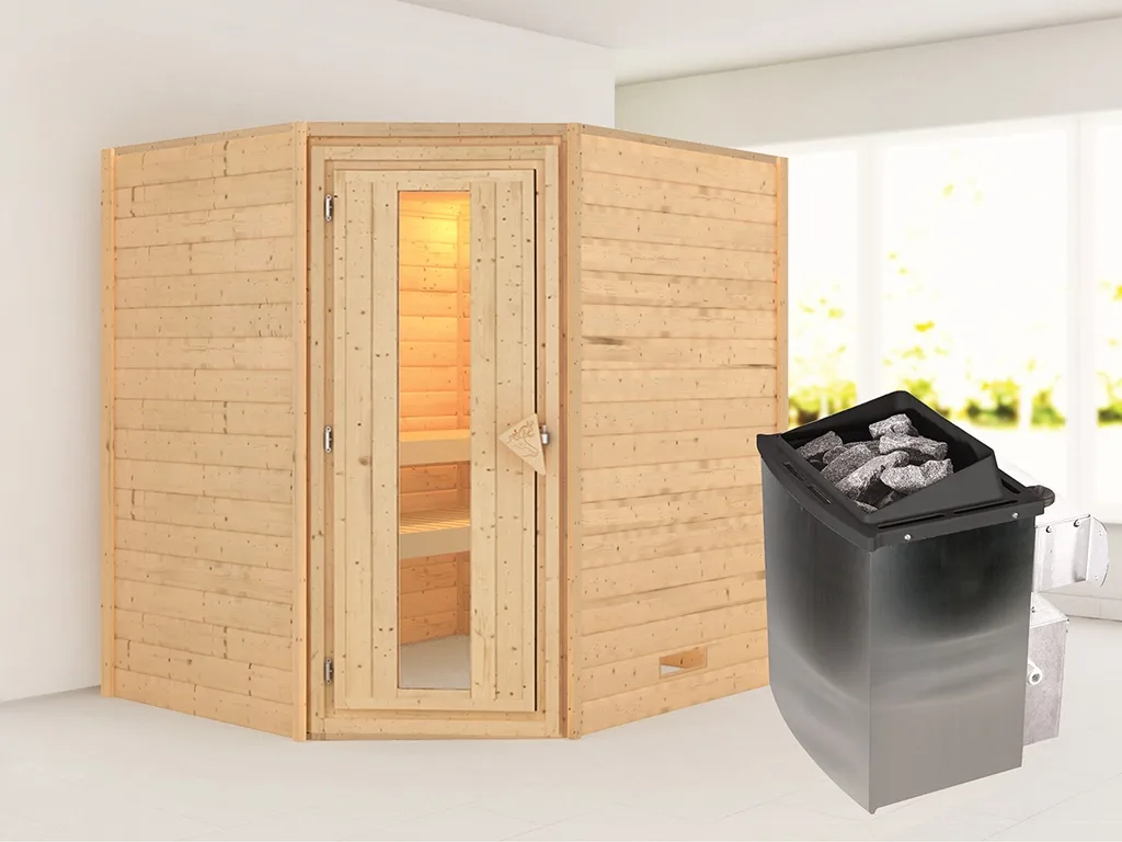 Sauna Massivholzsauna Mia, inkl. 9 kW Ofen mit integrierter Steuerung