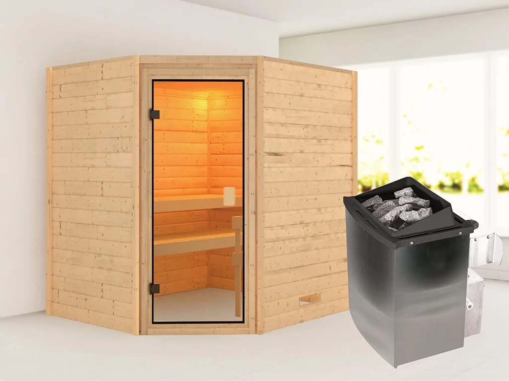 Sauna Massivholzsauna Mia, inkl. 9 kW Ofen mit integrierter Steuerung