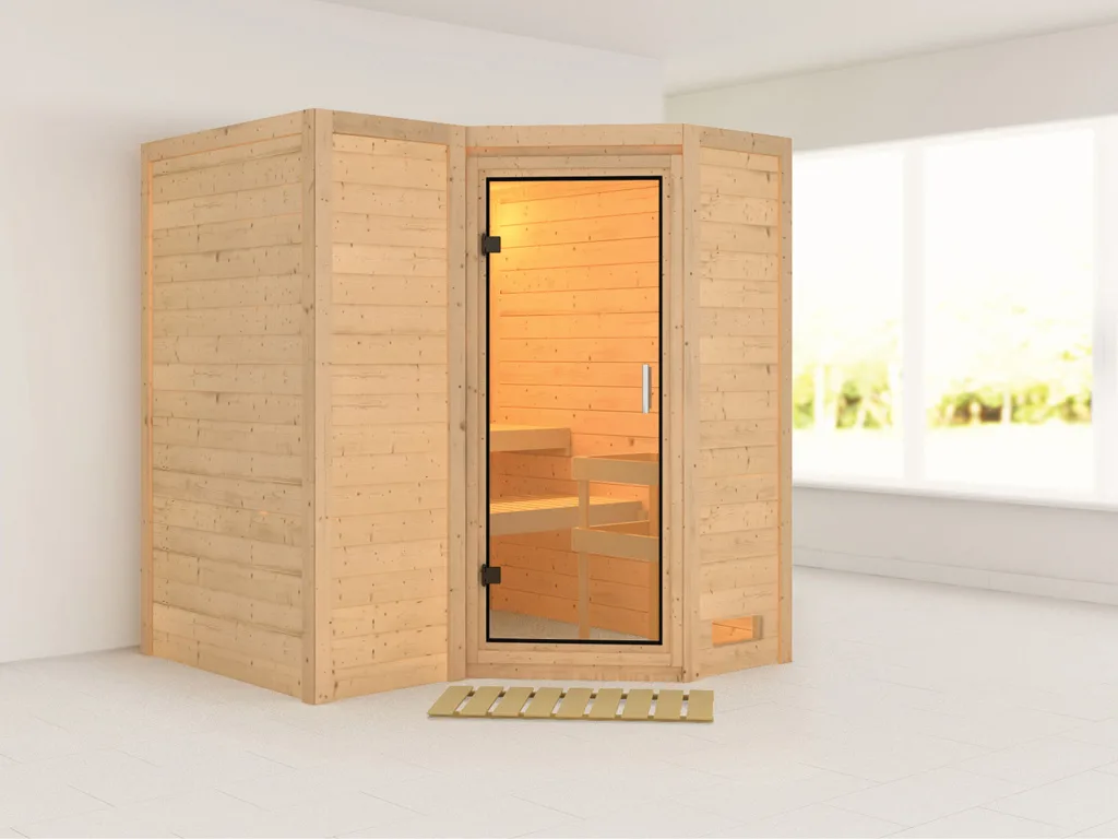 Sauna Massivholzsauna Sahib 1 Klarglas Ganzglastür