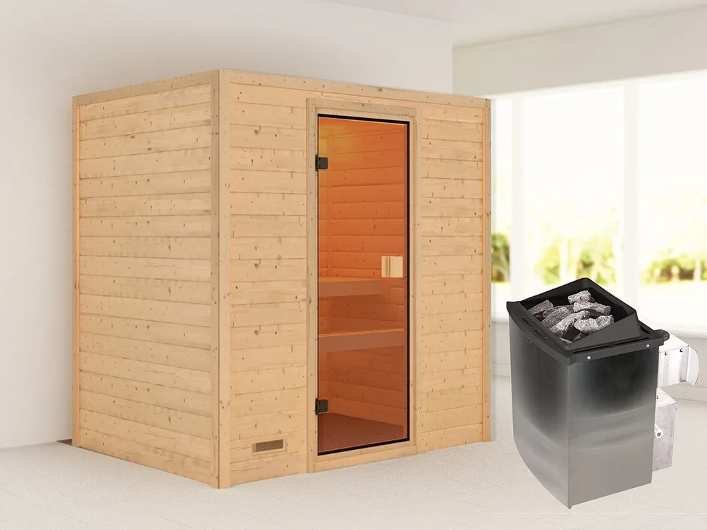 Sauna Massivholzsauna Selena, inkl. 9 kW Ofen mit integrierter Steuerung