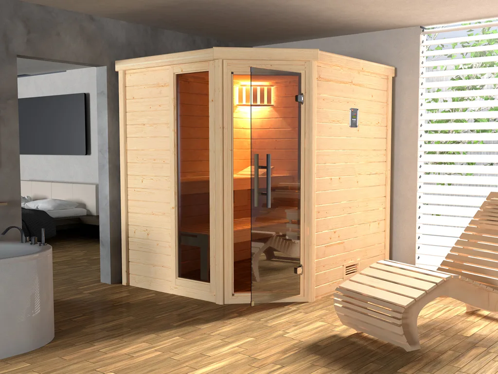 Unsere Wellnessartikel (Saunen, Saunahäuser, Saunafässer, Kotas, Infrarotkabinen, Saunaöfen etc.) dürfen nur für den privathäuslichen Gebrauch verwendet werden! Saunaöfen und dazugehörige Steuerelemente dürfen nur durch einen örtlich zugelassenen Elektroinstallateur mittels festem Anschluss an das Netz angeschlossen werden. Ausnahme: 230 Volt Plug-&-Play-Saunaöfen. Die Mindestsicherheitsabstände vom Ofen zur Wand und vom Ofen zum Ofenschutz müssen unbedingt eingehalten werden. Bei 9-kW-Öfen muss die Höhe des Ofenschutzes angepasst werden. Bitte beachte zu den obig genannten Hinweisen die beigefügten Montageanleitungen.
