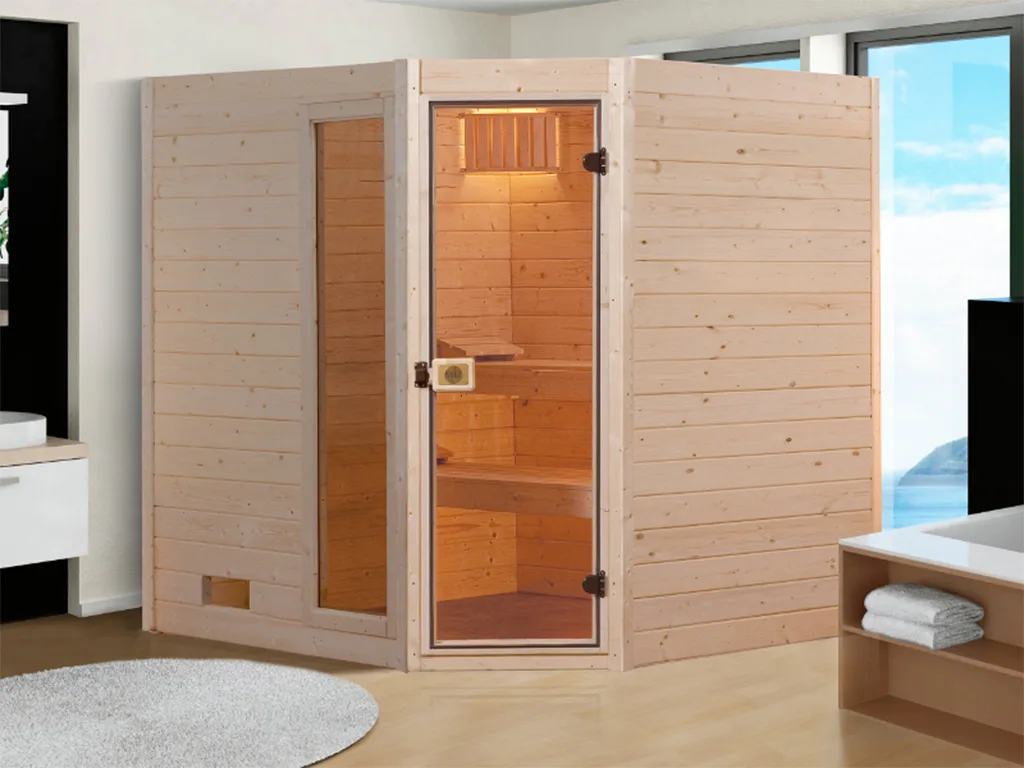 WEKA Sauna SPARSET 2 Valida Eck 1 mit Glastür und Fensterelement