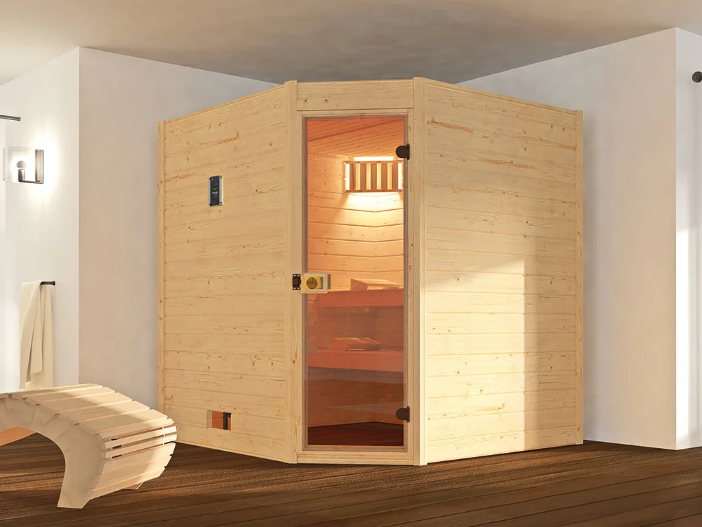 Die Lieferung der Sauna erfolgt ohne Saunaofen und -steuerung. Diese können in unserem Online Shop separat erworben werden. Falls Du Dich nicht für einen Ofen mit integrierter Steuerung entscheidest, kannst Du eine externe Steuerung kaufen. Diese ist praktisch außerhalb der Sauna bedienbar und verfügt über vielseitige Einstellungsmöglichkeiten.