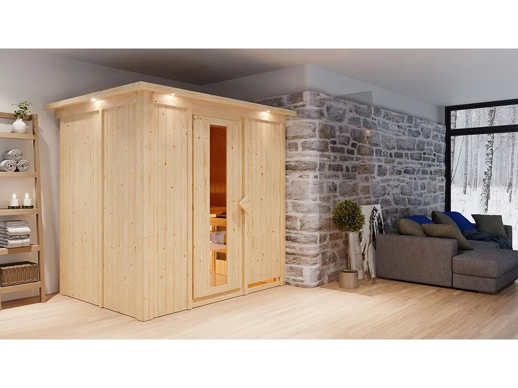 Sauna Systemsauna Bodin mit Dachkranz, inkl. 9 kW Ofen mit integrierter Steuerung