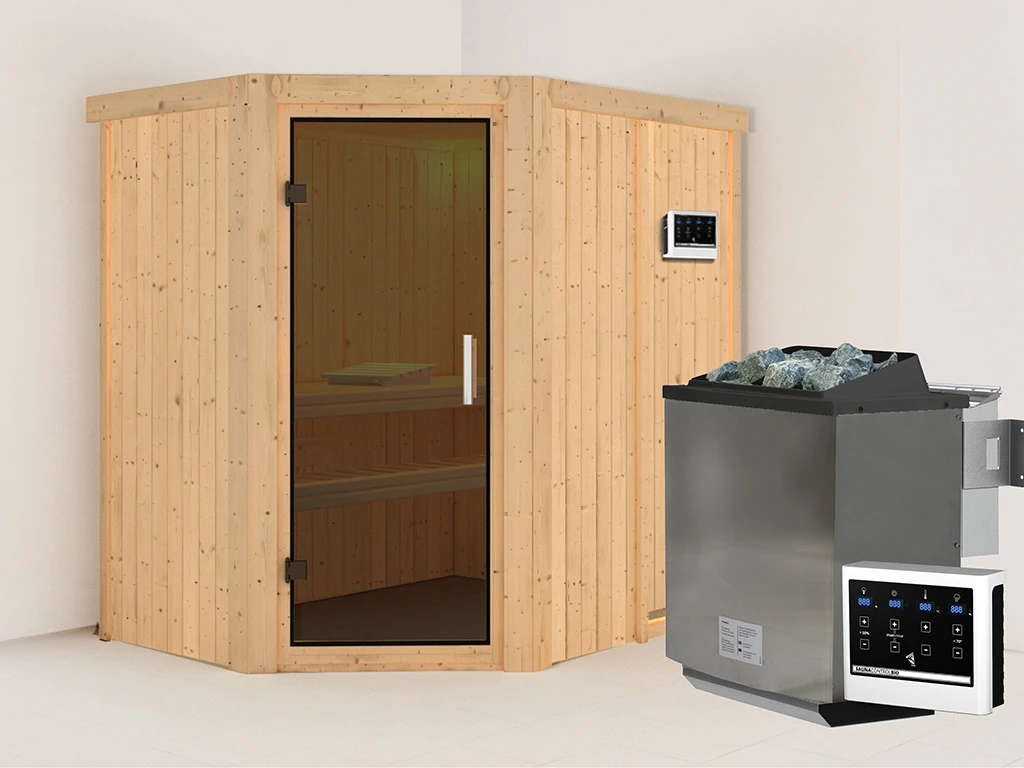 Sauna Systemsauna Carin, inkl. 9 kW Bio-Ofen mit externer Steuerung