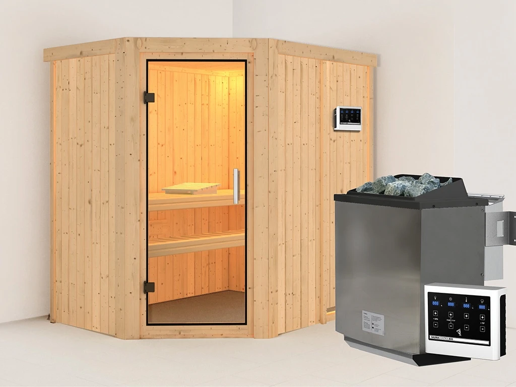 Sauna Systemsauna Carin, inkl. 9 kW Bio-Ofen mit externer Steuerung