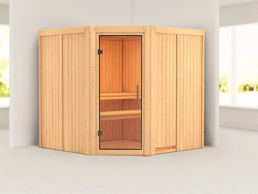 Dieses Saunamodell – eine System- bzw. Elementsauna – zeichnet sich durch seine besondere Sandwich-Bauweise aus, d.h. die Wandelemente bestehen aus einzelnen Schichten. Die bereits vorgefertigten Wandelemente ermöglichen einen schnellen Aufbau innerhalb weniger Stunden.