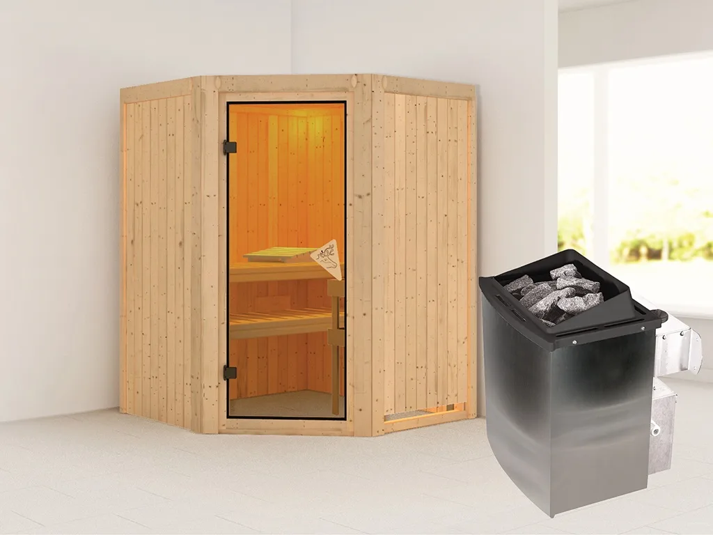 Sauna Systemsauna Larin, inkl. 9 kW Ofen mit integrierter Steuerung
