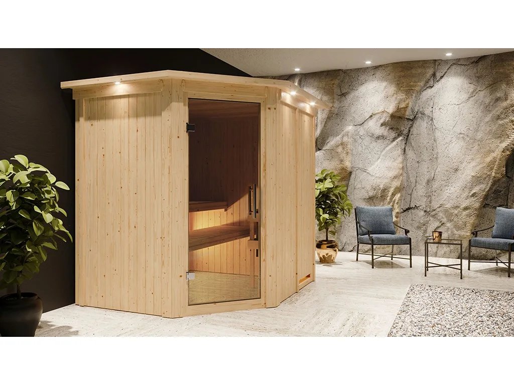 Sauna Systemsauna Siirin mit Dachkranz, inkl. 9 kW Ofen mit integrierter Steuerung