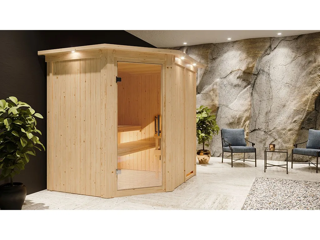 Sauna Systemsauna Siirin mit Dachkranz, inkl. 9 kW Ofen mit integrierter Steuerung