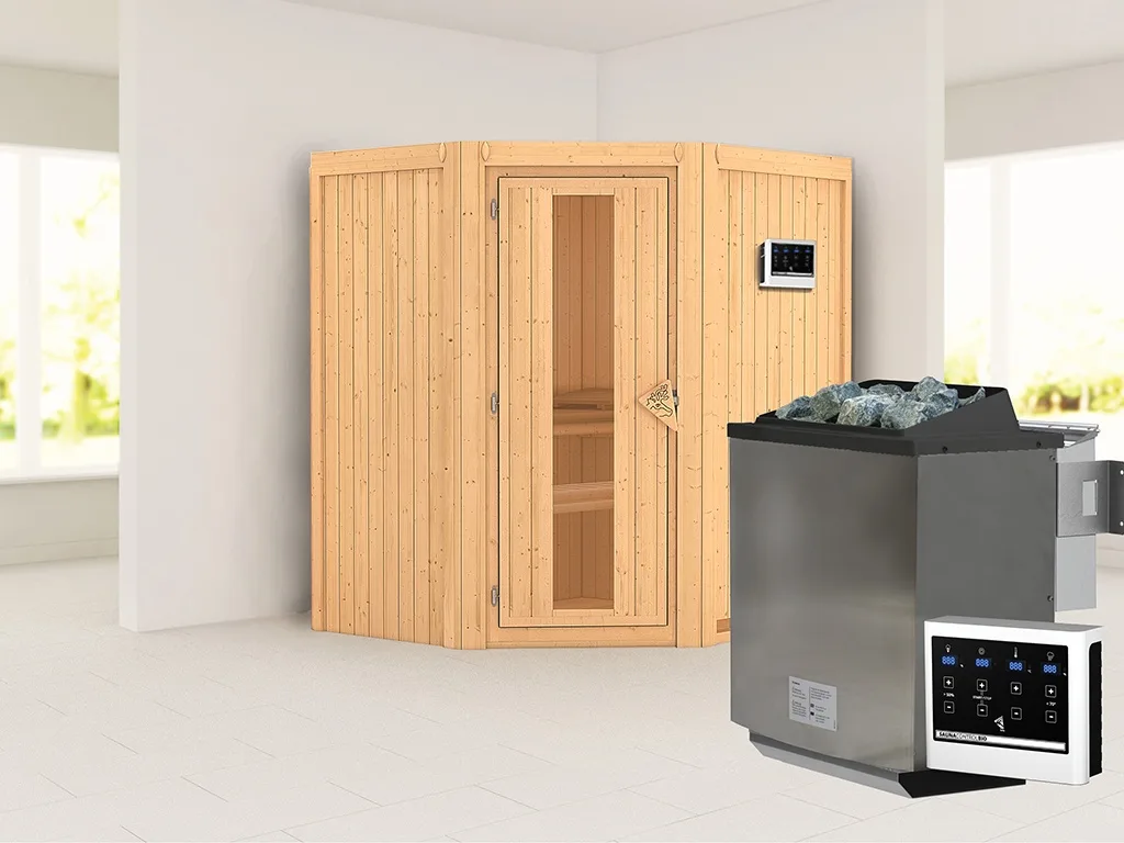 Sauna Systemsauna Taurin, inkl. 9 kW Bio-Ofen mit externer Steuerung