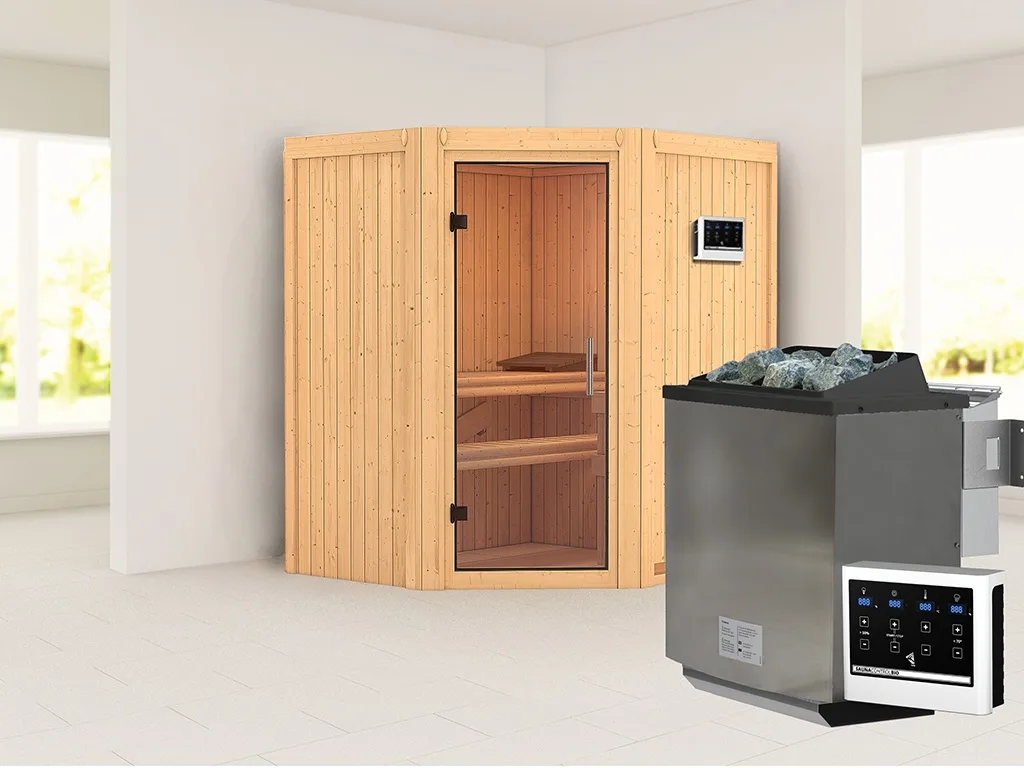 Sauna Systemsauna Taurin, inkl. 9 kW Bio-Ofen mit externer Steuerung
