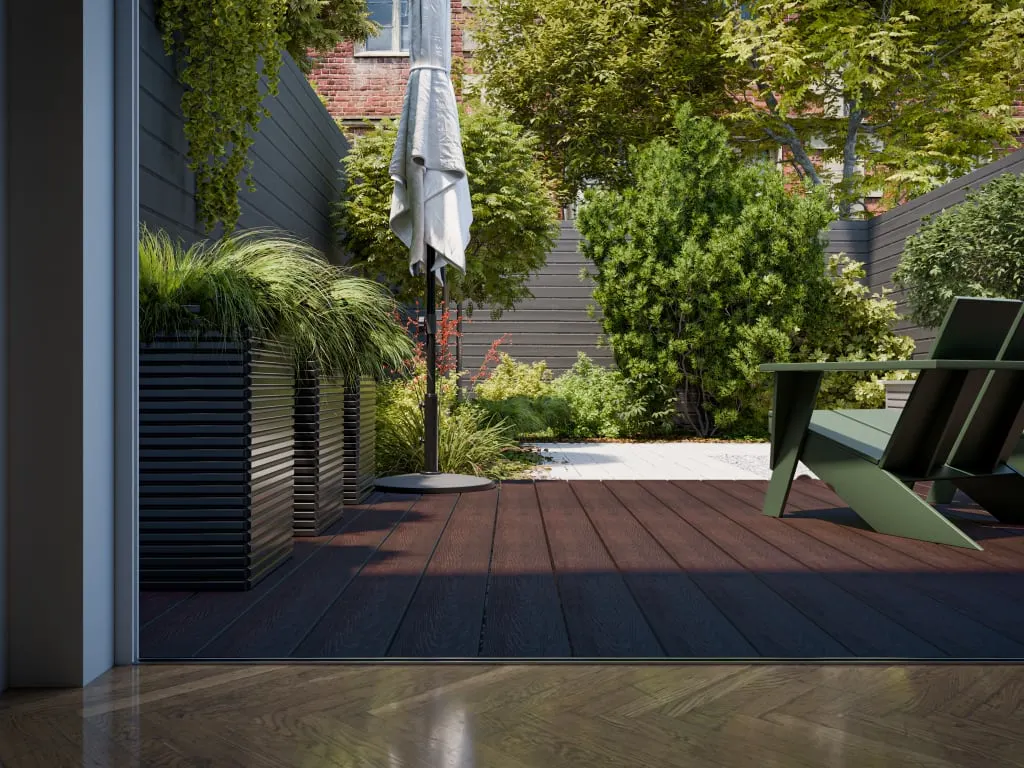 Diese 25 mm starken Terrassendielen werden aus WPC hergestellt. WPC (Wood Plastic Composite) ist eine Verbindung aus ca. 70 % Holz und 30 % Kunststoff mit vielen Vorteilen. Dieser Verbundwerkstoff ist nicht nur leicht zu pflegen und reinigen, sondern auch witterungsbeständig, form- und farbstabil, splitterfrei sowie rutschfest – der ideale Terrassenbelag. Außerdem zeichnet er sich durch die hohe Dichte aus, die ihn gut vor Insektenbefall schützt.