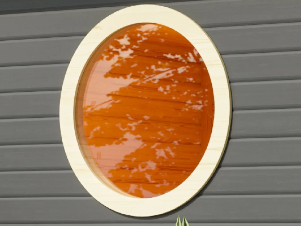 Rundes Saunafenster mit Klarglas und weiß veredeltem Rahmen – ideal für moderne Saunaarchitektur mit lichtoffenem Charakter. Mit den Maßen 84 x 84 cm (B x H) schafft es eine großzügige Lichtöffnung und setzt einen gestalterischen Akzent im Saunabereich.