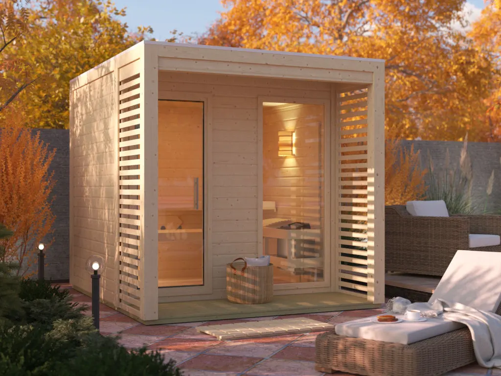 Erlebe pure Entspannung mit deiner Gartensauna: Hochwertige Materialien und attraktives Design sorgen für ein einzigartiges Saunaerlebnis direkt in deinem Garten. Mit einem Gesamtmaß von 231 x 276 cm bietet das Saunahaus genügend Platz für ungestörte Wellnessstunden im eigenen Garten. Hier können 2-3 Personen gleichzeitig saunieren.