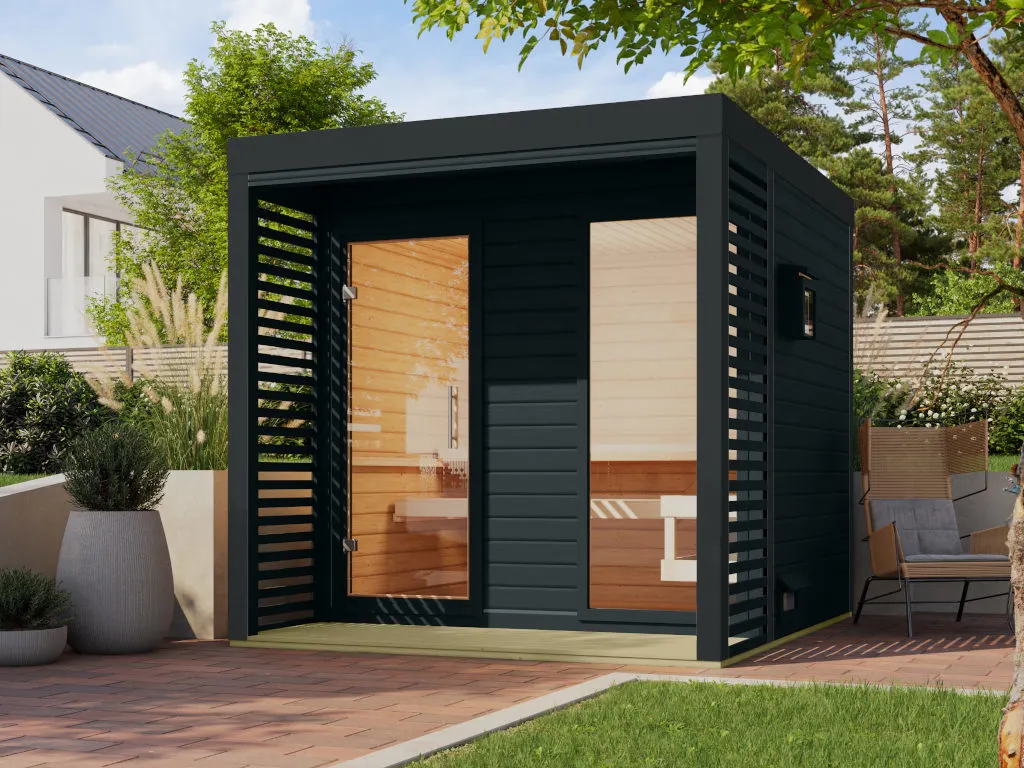 Erlebe pure Entspannung mit deiner Gartensauna: Hochwertige Materialien und attraktives Design sorgen für ein einzigartiges Saunaerlebnis direkt in deinem Garten. Hier können 2-3 Personen gleichzeitig saunieren.
