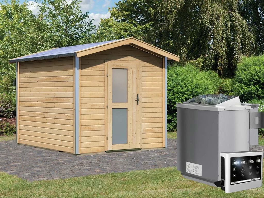 KARIBU Saunahaus "Bosse 1" 38 mm inkl. 9 kW Bio-Kombiofen mit externer Steuerung "Easy"