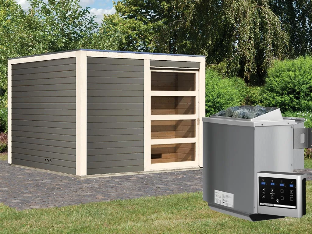 Die Wellness-Oase für deinen Garten – das Saunahaus mit praktischem Vorraum und bequemer Schiebetür