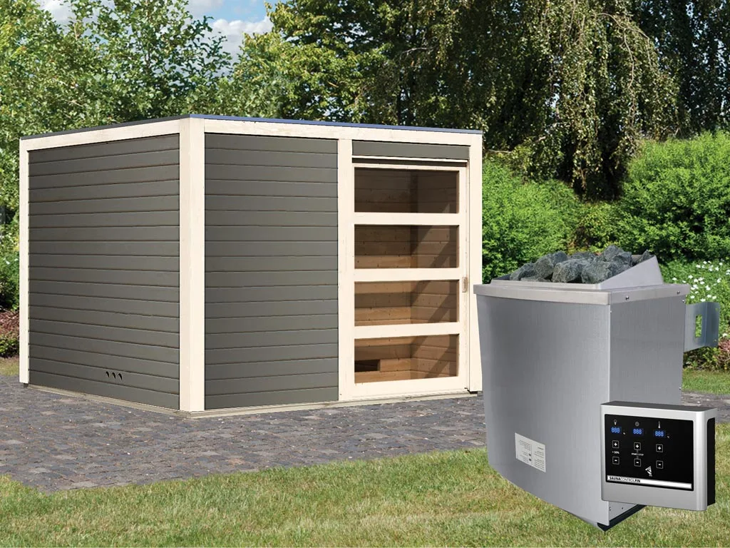 KARIBU Saunahaus Energiesparhaus "Cuben" 38 mm terragrau