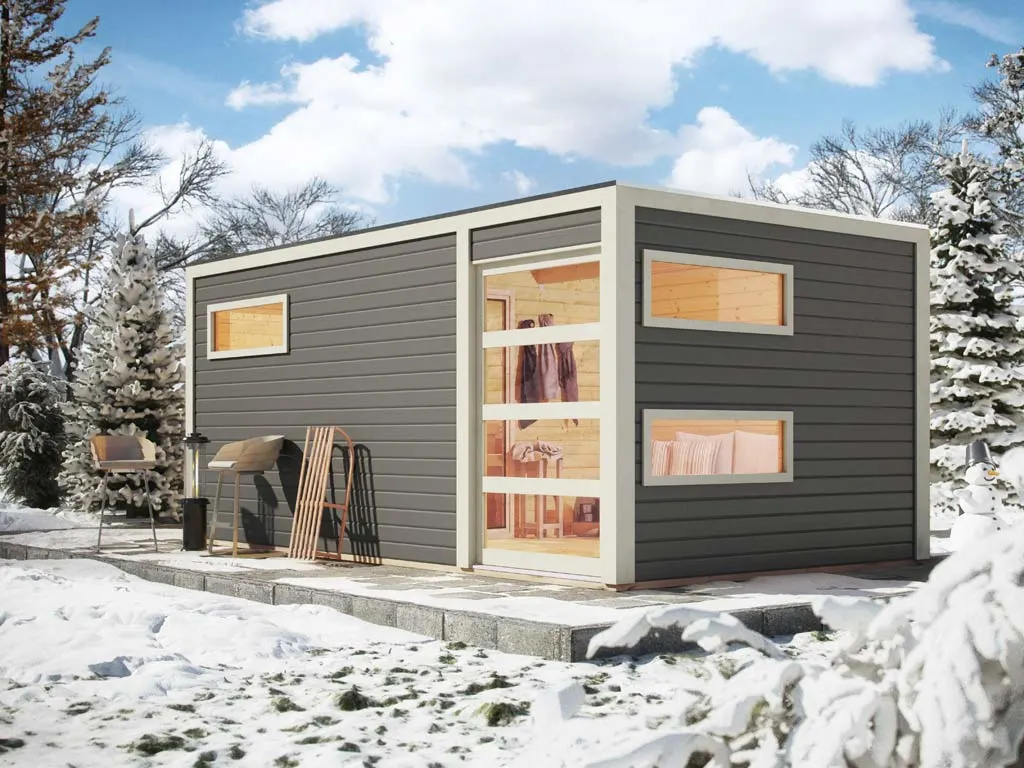 KARIBU Saunahaus "Hygge" 38 mm Grau