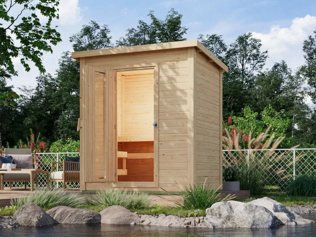 Erlebe pure Entspannung mit deiner Gartensauna: Hochwertige Materialien und attraktives Design sorgen für ein einzigartiges Saunaerlebnis direkt in deinem Garten. Hier können 2-3 Personen gleichzeitig saunieren.