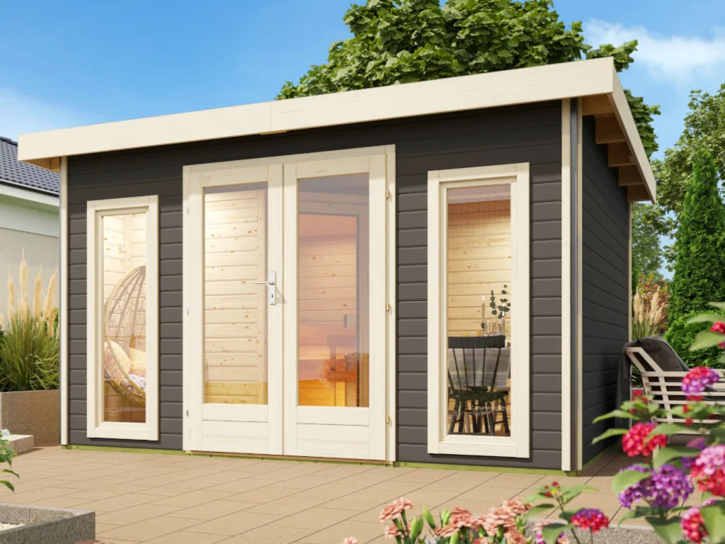 KARIBU Saunahaus Mainburg 2 terragrau 38 mm