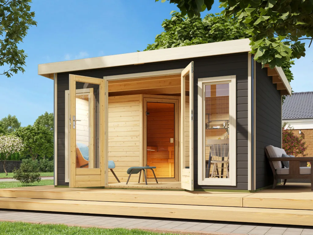 KARIBU Saunahaus Mainburg 3 terragrau 38 mm