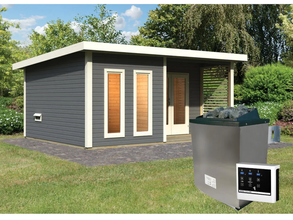 Unsere Wellnessartikel (Saunen, Saunahäuser, Saunafässer, Kotas, Infrarotkabinen, Saunaöfen etc.) dürfen nur für den privathäuslichen Gebrauch verwendet werden! Saunaöfen und dazugehörige Steuerelemente dürfen nur durch einen örtlich zugelassenen Elektroinstallateur mittels festem Anschluss an das Netz angeschlossen werden. Ausnahme: 230 Volt Plug-&-Play-Saunaöfen. Die Mindestsicherheitsabstände vom Ofen zur Wand und vom Ofen zum Ofenschutz müssen unbedingt eingehalten werden. Bei 9-kW-Öfen muss die Höhe des Ofenschutzes angepasst werden. Bitte beachte zu den obig genannten Hinweisen die beigefügten Montageanleitungen.