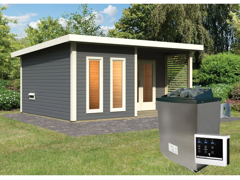 | Lieferumfang | Saunahaus Mainburg 5, 3 Liegebänke, Steuergerät Easy Traditionell, klassischer Saunaofen, Massivholzboden, Unterkonstruktionshölzer, Zylinderschloss mit 3 Schlüsseln, Ofenschutzgitter aus Fichte |