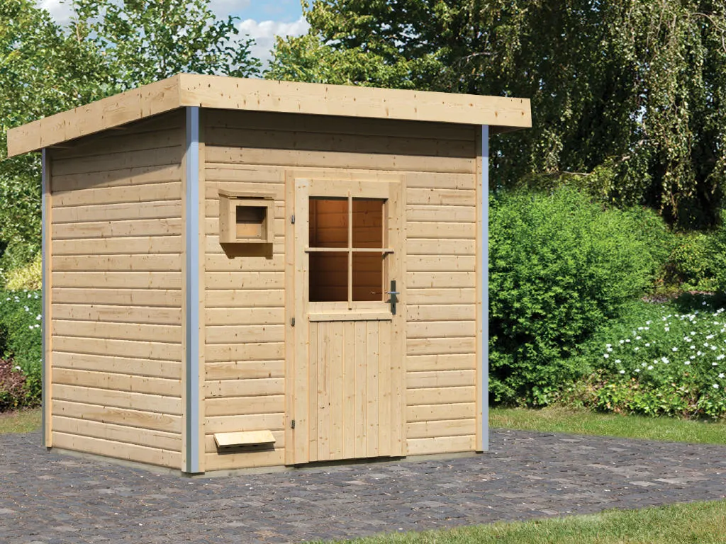 Erlebe pure Entspannung mit deiner Gartensauna: Hochwertige Materialien und attraktives Design sorgen für ein einzigartiges Saunaerlebnis direkt in deinem Garten. Der Saunaraum ist mit einer Fläche von 219 x 184 cm ausreichend dimensioniert. Hier können 3-4 Personen gleichzeitig saunieren.