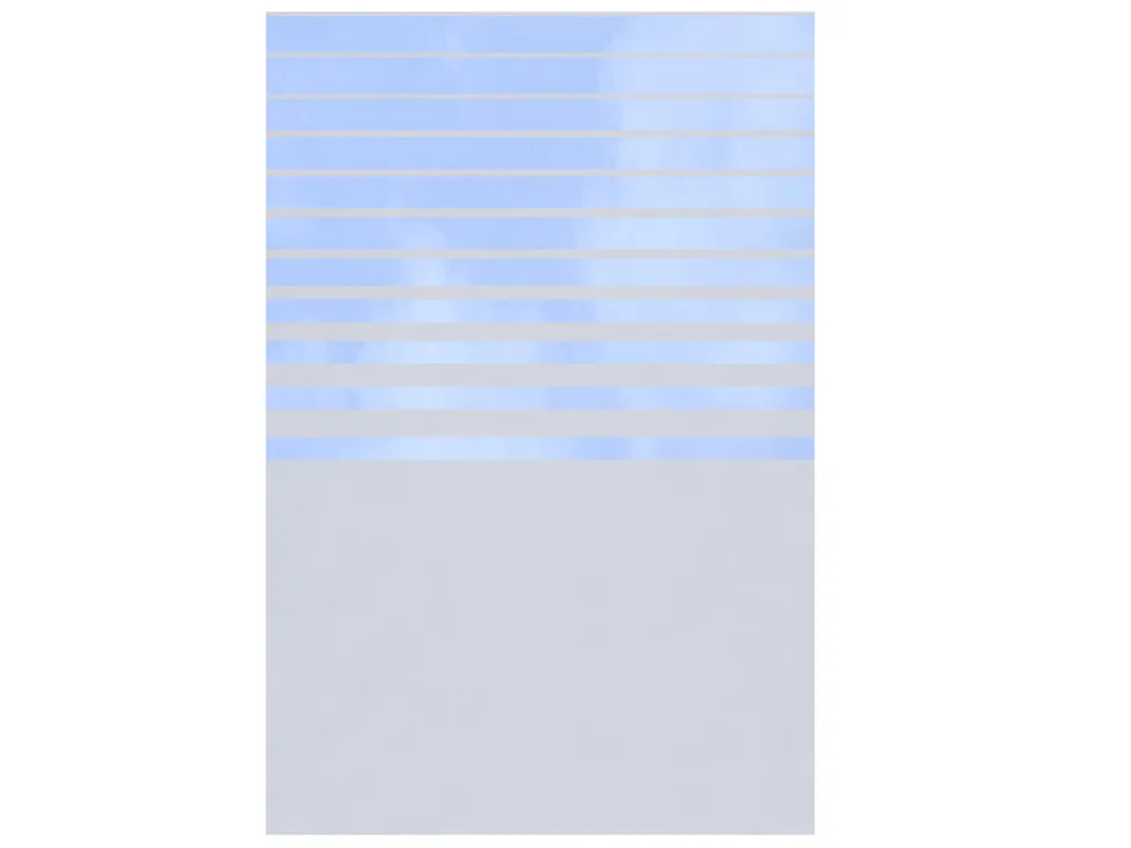 Die Serie SYSTEM GLAS BETA besteht aus satiniertem Glas, das durch ansteigend hohe, klare Streifen durchbrochen wird.