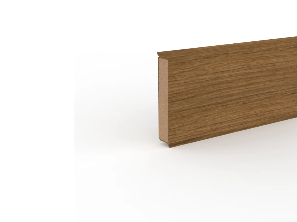Die Sockelleiste ist 2.500 mm lang, 13 mm breit und 60 mm hoch. Sie besteht aus einem HDF-Kern, der mit chlorfreiem Polyblend auf Basis von PP/TPE ummantelt und somit besonders robust ist. Die flexible Weichlippe oben und unten passt sich mühelos möglichen Unebenheiten an Wand oder Boden an und verhindert auf diese Weise Schattenfugen sowie notwendiges Nacharbeiten mit Silikon oder Acryl. Für die Profilabschlüsse und die Bildung der Innen- und Außenecken werden keine zusätzlichen Formteile benötigt. Die Montage gelingt mit Heißschmelzkleber spielend leicht.