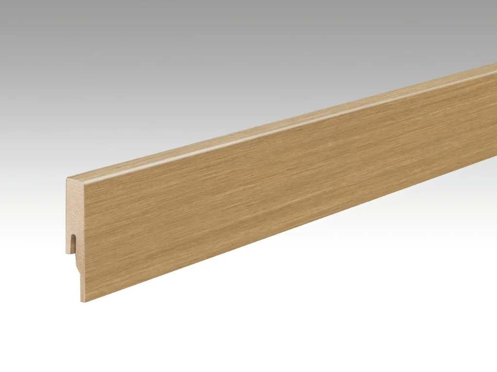 Als Designelement werden sie zu Unrecht unterschätzt – Sockelleisten sorgen für einen weichen Übergang vom Boden zur Wand oder setzen gekonnt einen Akzent im Raum. Die Leiste in Braun harmoniert mit allen Wohnräumen und Bodenbelagsarten.