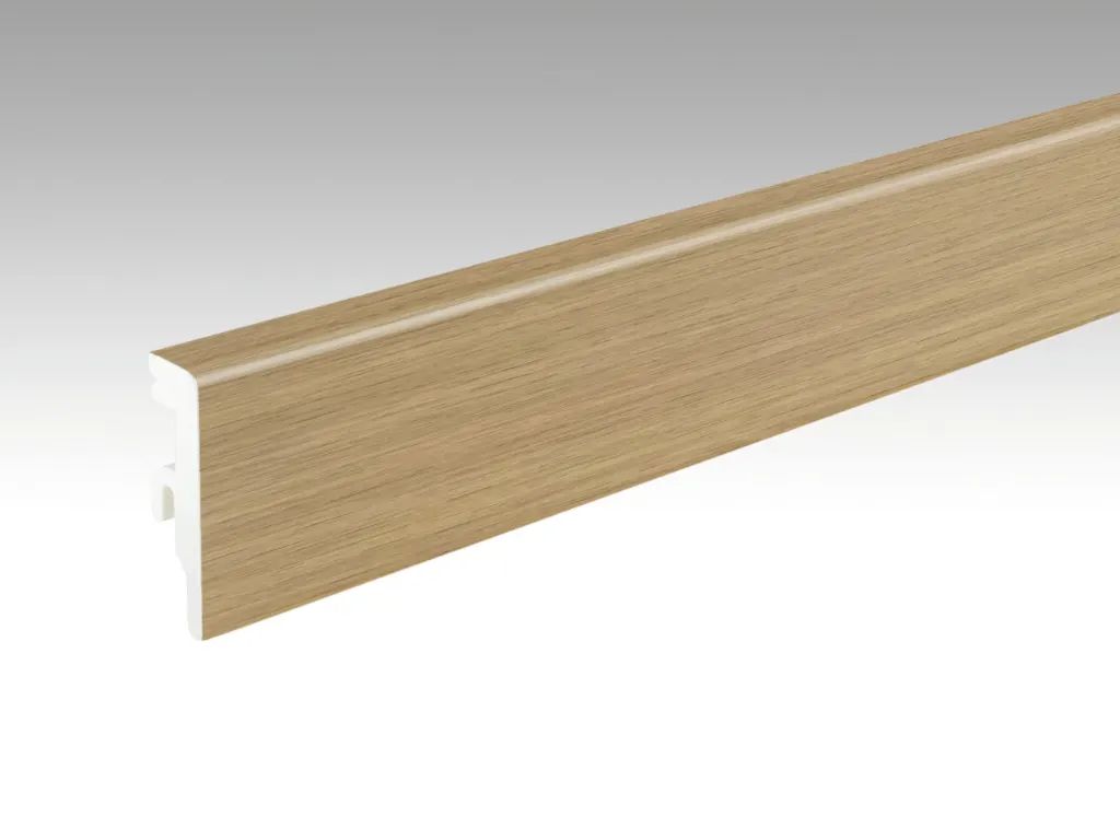 Besonders montagefreundliche Klipptechnik: Die Sockelleisten werden einfach auf Leistenklipps gesteckt und lassen sich jederzeit problemlos wieder abnehmen. Außerdem eignen sich die Leistenklipps mit Kabelführungstiefe (optional erhältlich) ideal für die verdeckte Kabelverlegung.