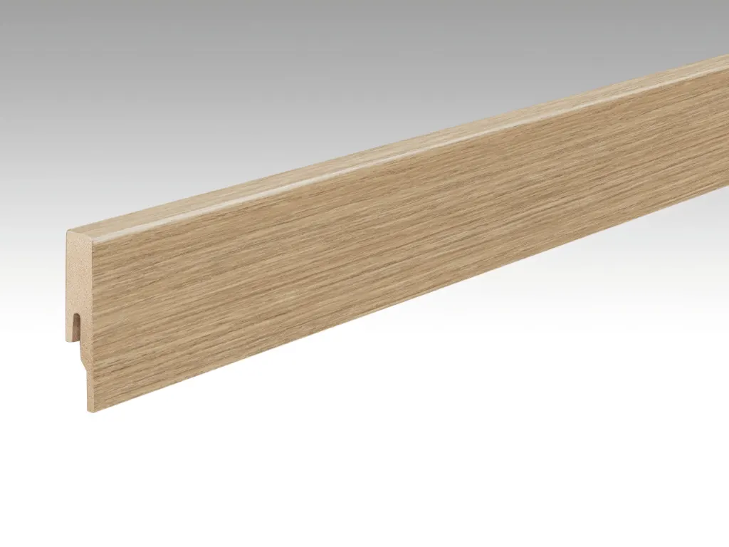 Als Designelement werden sie zu Unrecht unterschätzt – Sockelleisten sorgen für einen weichen Übergang vom Boden zur Wand oder setzen gekonnt einen Akzent im Raum. Die Leiste in Beige harmoniert mit allen Wohnräumen und Bodenbelagsarten.