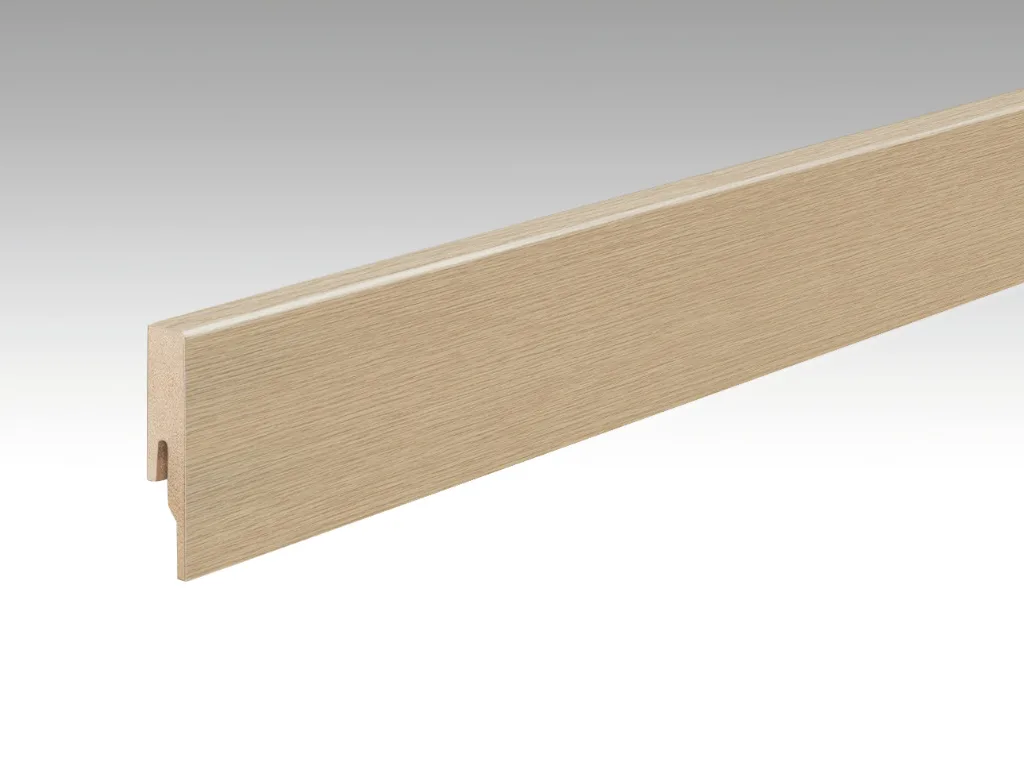 Als Designelement werden sie zu Unrecht unterschätzt – Sockelleisten sorgen für einen weichen Übergang vom Boden zur Wand oder setzen gekonnt einen Akzent im Raum. Die Leiste in Beige harmoniert mit allen Wohnräumen und Bodenbelagsarten.