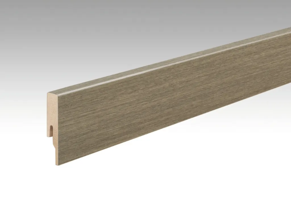 Als Designelement werden sie zu Unrecht unterschätzt – Sockelleisten sorgen für einen weichen Übergang vom Boden zur Wand oder setzen gekonnt einen Akzent im Raum. Die Leiste in Graubraun harmoniert mit allen Wohnräumen und Bodenbelagsarten.