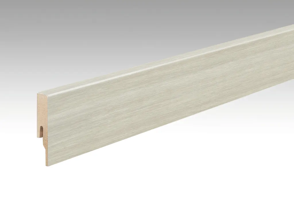 Als Designelement werden sie zu Unrecht unterschätzt – Sockelleisten sorgen für einen weichen Übergang vom Boden zur Wand oder setzen gekonnt einen Akzent im Raum. Die Leiste in Cremeweiß harmoniert mit allen Wohnräumen und Bodenbelagsarten.